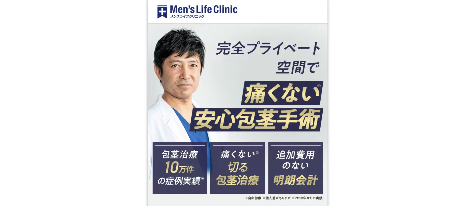 アトムクリニックの施術実績は2.5万件以上(※1)、「患者様一人ひとりに本気で向き合う」ことを理念に、包茎治療に特化したクリニックを開設しました。
